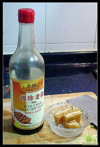 老抽和糖,原來的方子說用冰糖最好,家裡的冰糖沒有了,我覺得用片糖應該可以的。