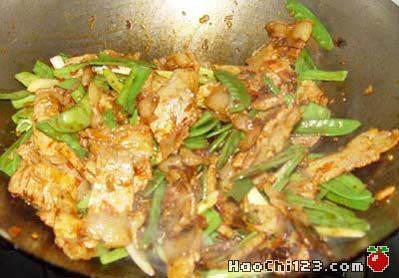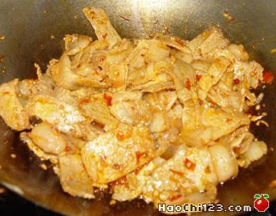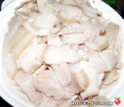 - ·特 色:正宗的回鍋肉,應該用香蒜苗做。- ·操 作: 用姜、蔥、花椒吊香湯,把豬肉煮至8成熟,急凍後切片,回原湯汆散,撈出