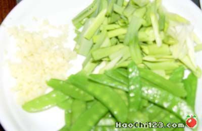 姜蒜切末,蒜苗切段,要多吃蔬菜,加點焯過水的豌豆角